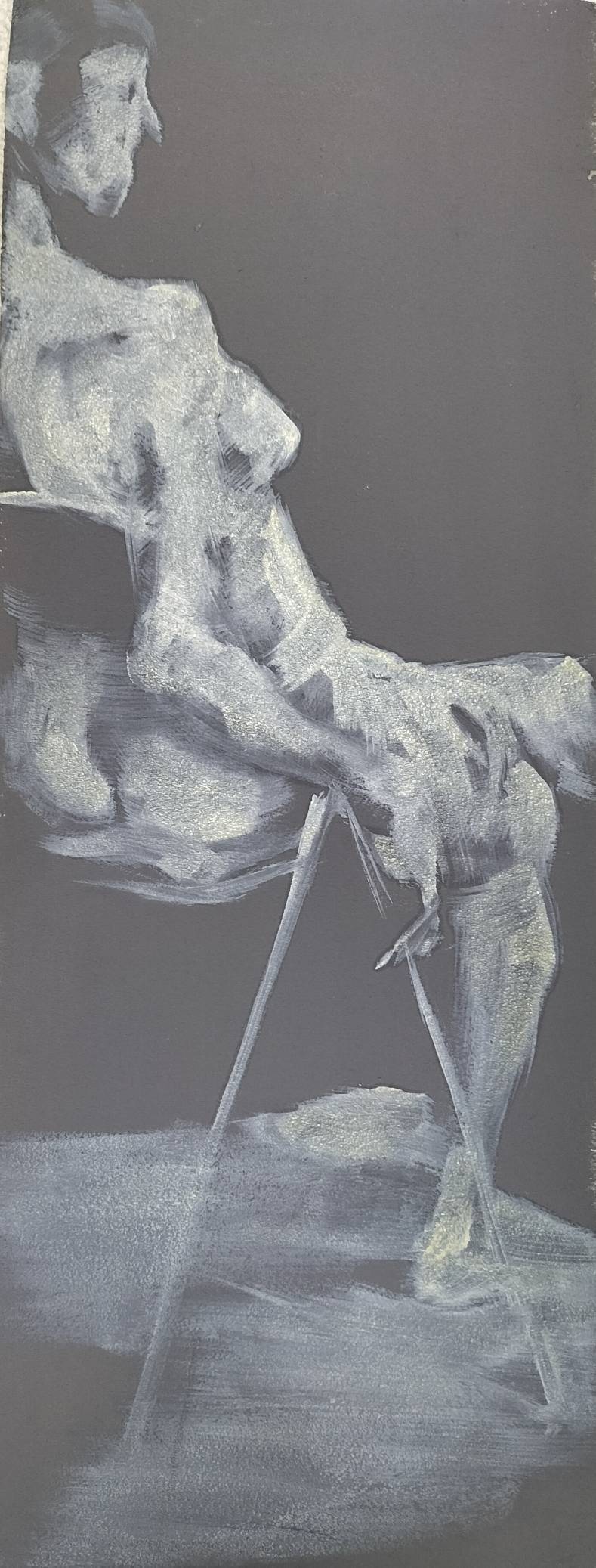 This is a drawing of a nude model, painted with oil paints on a styrene board. It is unframed. While we will carefully package it for shipping, please handle with care to avoid damage.